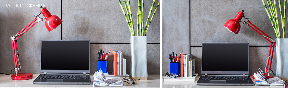 Варианты расположения настольной лампыСправа - для левшей, слева - для правшей.