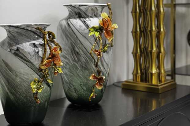 Ваза стеклянная зеленая с цветком 55RV6816S