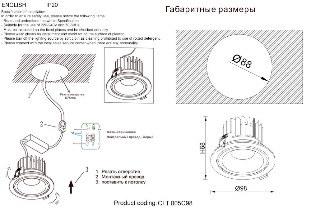 Встраиваемый светодиодный светильник Crystal Lux CLT 005C98 WH