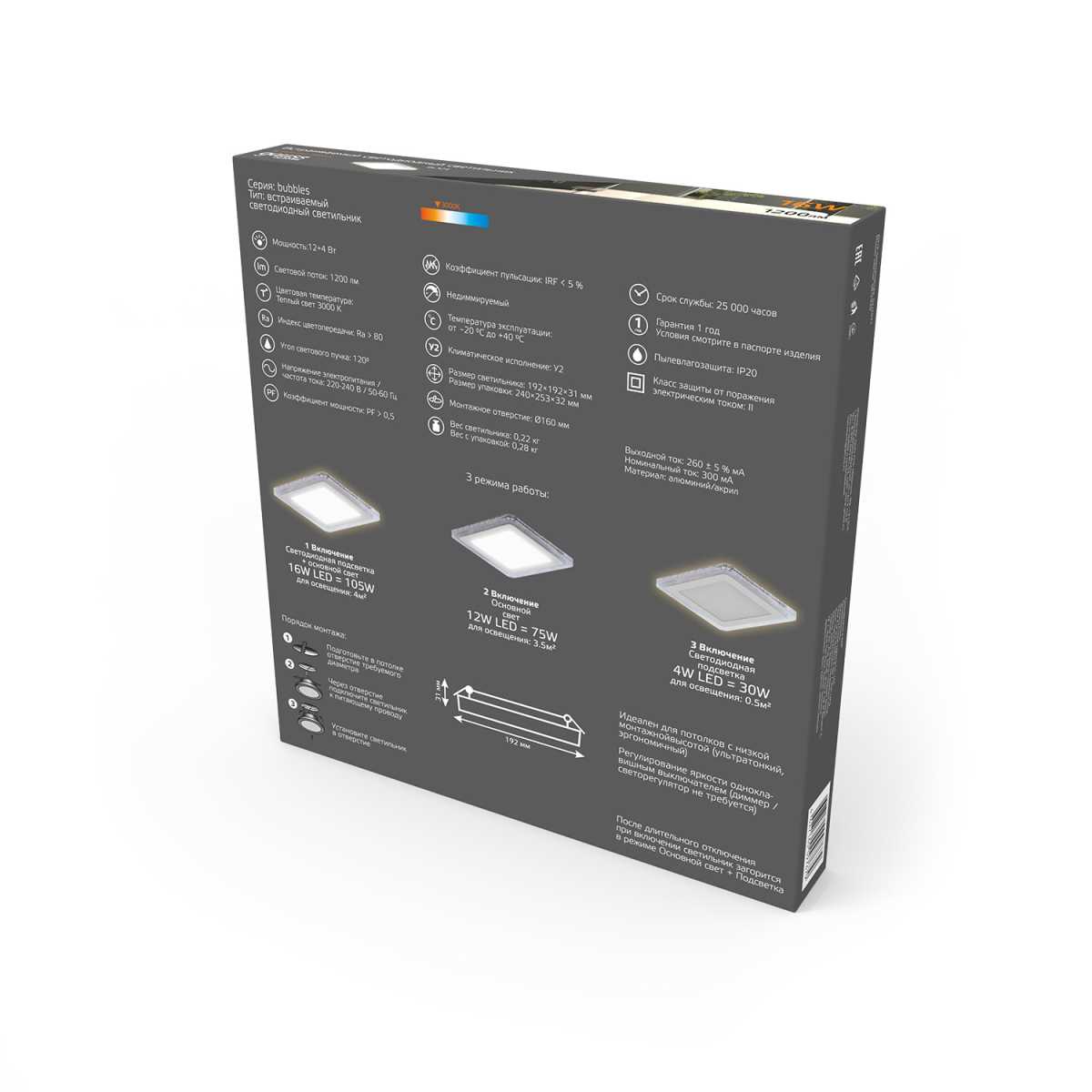 Встраиваемый светодиодный светильник Gauss Backlight Bubbles с подсветкой BL324