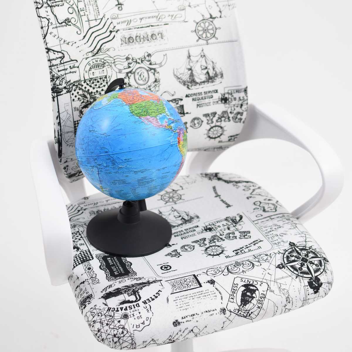 Детское кресло AksHome Ricci серый, кругосветное путешествие, ткань 72602
