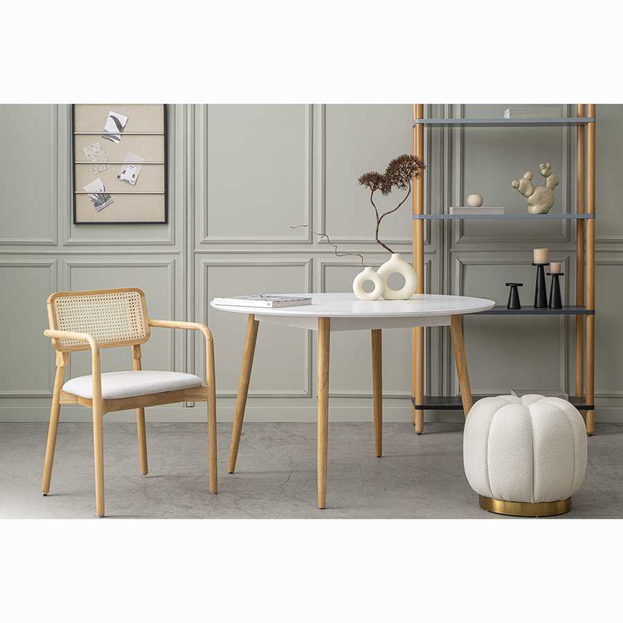 Кухонный стол от бренда Bergenson Bjorn с артикулом BB000101 c основанием из массива дерева и круглой столешницей из МДФ станет незаменимым дополнением для интерьера в скандинавском стиле. Китайский товар белого цвета диаметром 120 см и высотой 76 см и не оборудован ящиками. Конструкция с четырьмя ножками без колес не регулируется по высоте. У модели нет полки. Кухонный стол Bergenson Bjorn Matyo BB000101 поставляется по цене 23900 RUB и доставляется в кратчайшие сроки по Москве и всей России. Изучите отзывы пользователей, фото и характеристики и делайте заказ в интернет-магазине Вамсвет.
