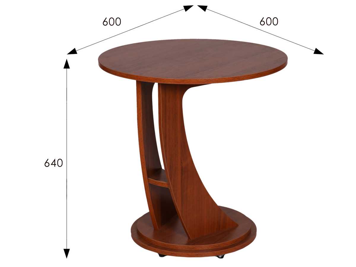 Приставной стол от бренда Мебелик с артикулом 005845 c основанием из ЛДСП и круглой столешницей из ЛДСП станет незаменимым дополнением для интерьера гостиной в стиле кантри. Российский товар цвета ореха диаметром 60 см и высотой 64 см и не оборудован ящиками. Конструкция с одной ножкой с колесами не регулируется по высоте. У модели есть полка. Приставной стол Мебелик Акцент-2 005845 поставляется по цене 3461 RUB и доставляется в кратчайшие сроки по Москве и всей России. Изучите отзывы пользователей, фото и характеристики и делайте заказ в интернет-магазине Вамсвет.