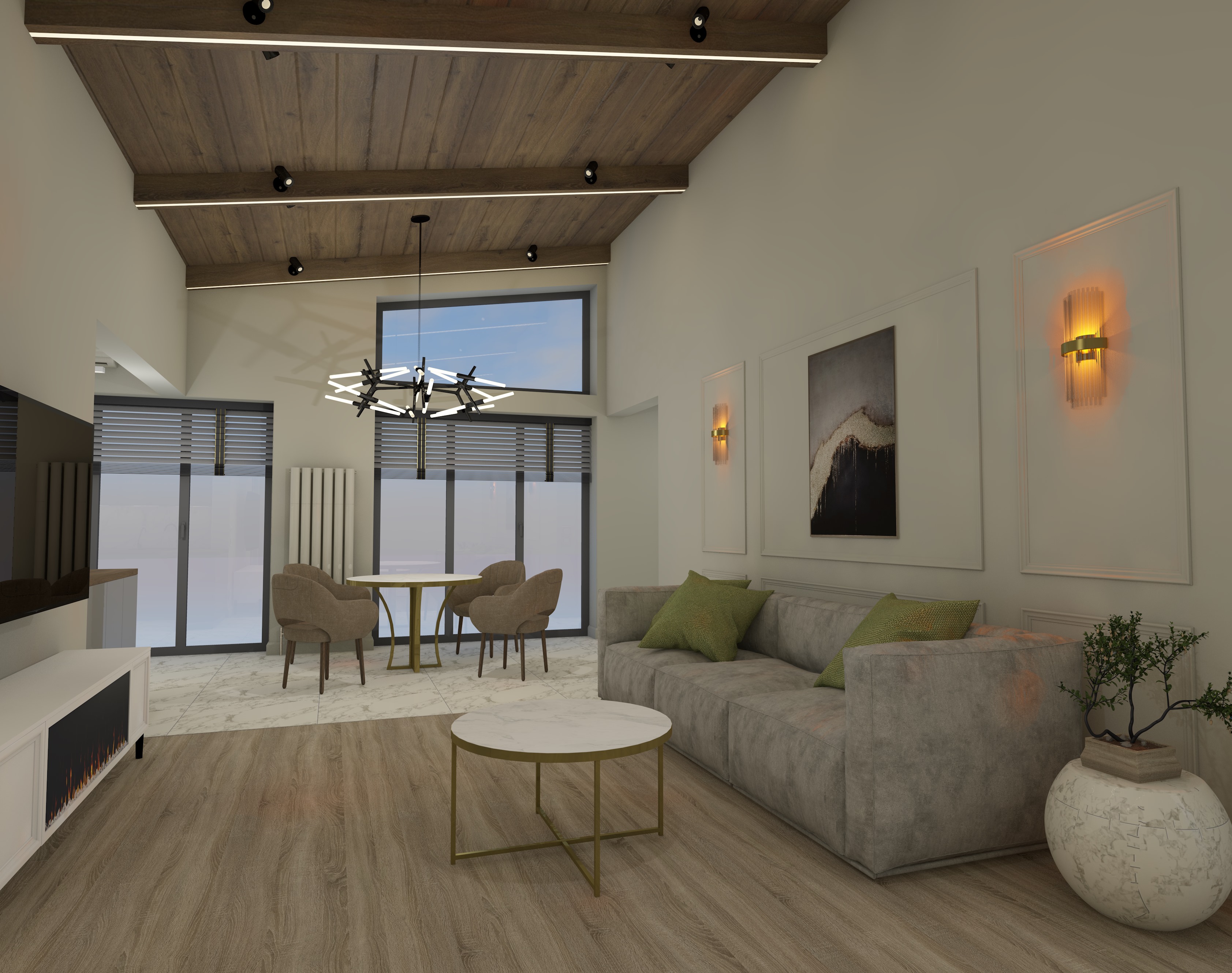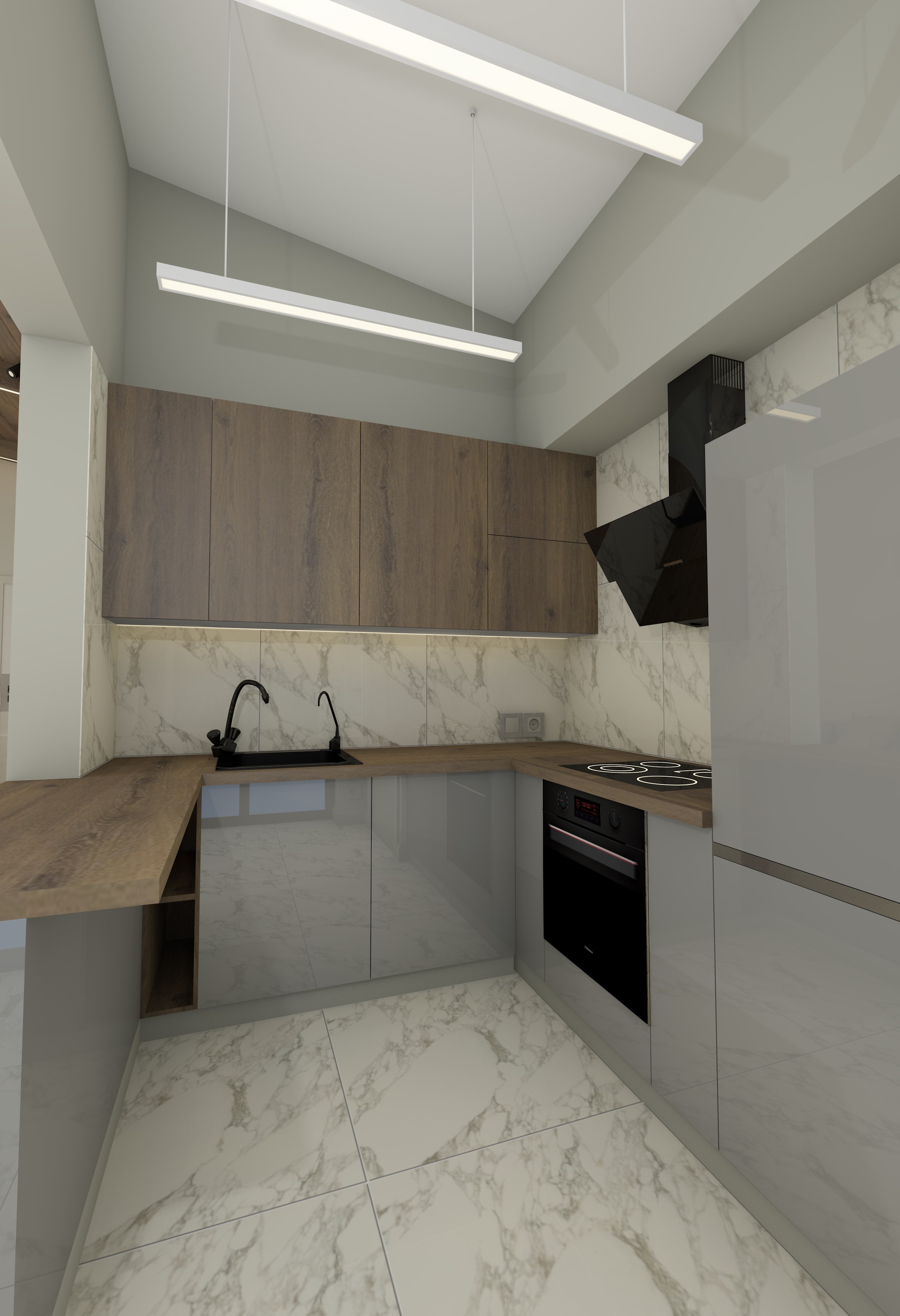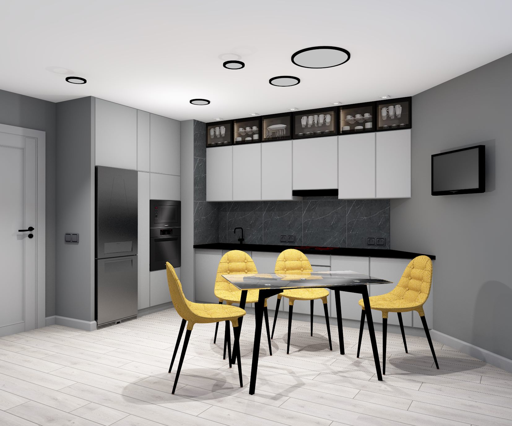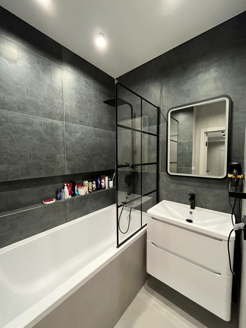 Перепланировка, современный стильный функциональный интерьер, серые оттенки, единая цветовая палитра, текстуры бетона, ровные линии, две гардеробные